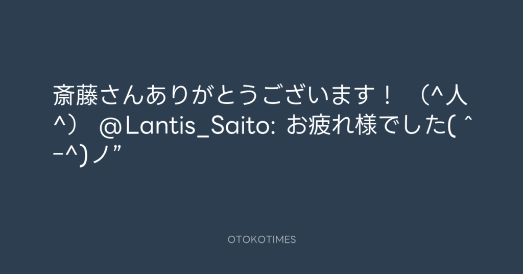 斎藤さんありがとうございます! (^人^) @Lantis_Saito: お疲れ様でした(^ー^)ノ” -
