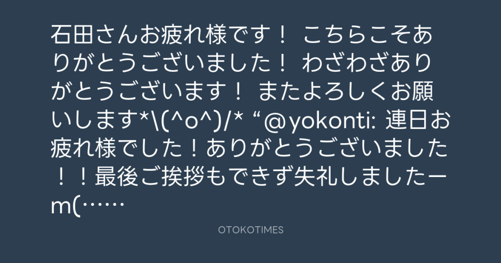 石田さんお疲れ様です! こちらこそありがとうございました! わざわざありがとう... -