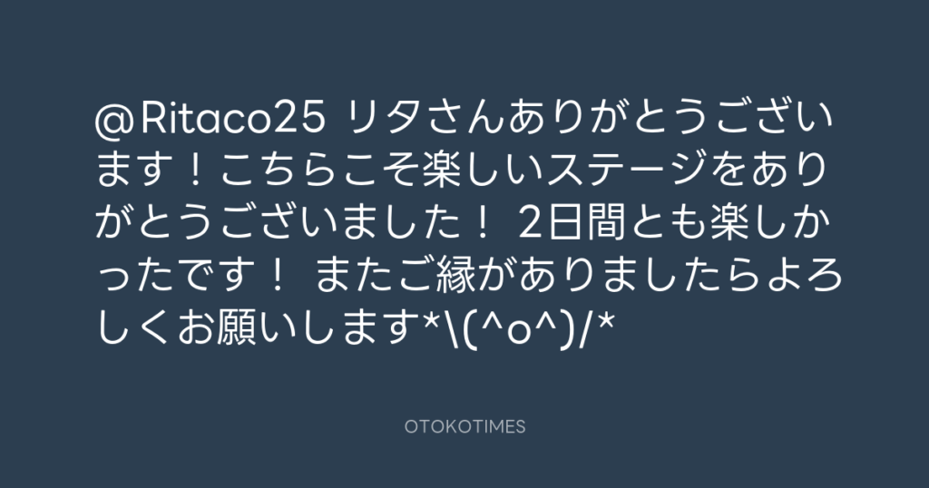 @Ritaco25 リタさんありがとうございます!こちらこそ楽しいステージをありがとう... -