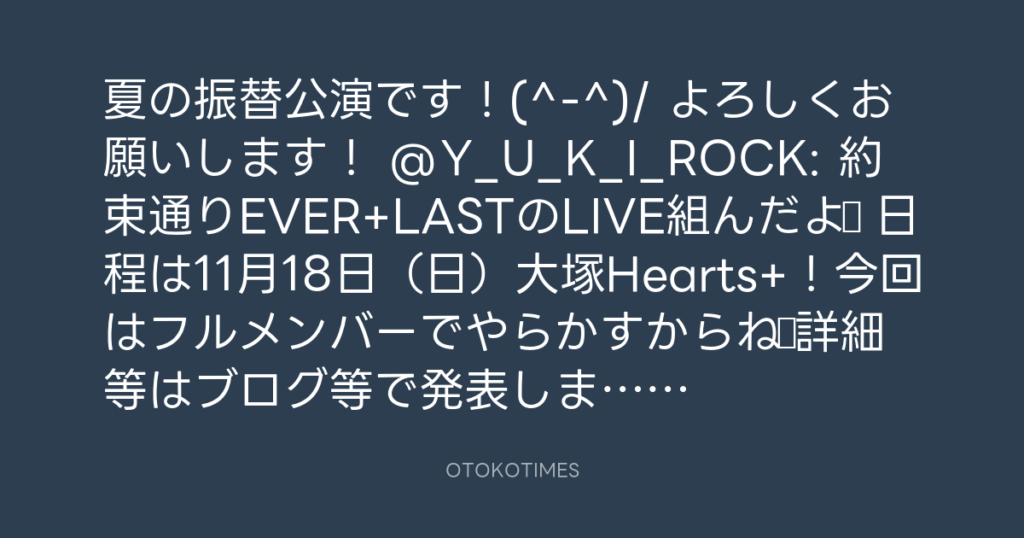 夏の振替公演です!(^-^)/ よろしくお願いします! @Y_U_K_I_ROCK: 約束通りEVER+L... -