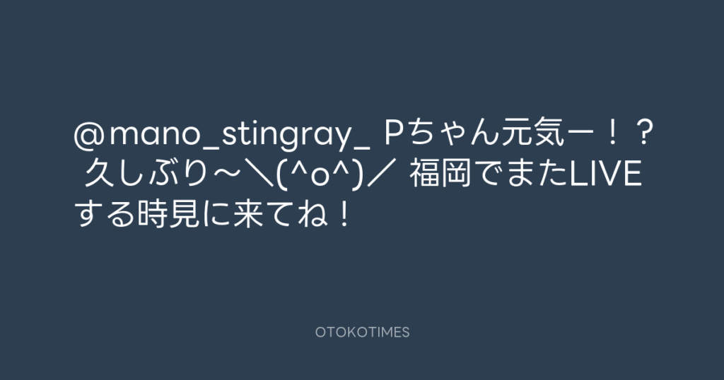 @mano_stingray_ Pちゃん元気ー!? 久しぶり~\(^o^)/ 福岡でまたLIVEする時見... -