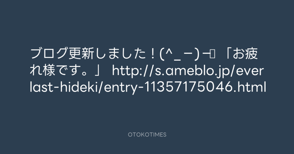 ブログ更新しました!(^_−)−☆ 「お疲れ様です。」 http://s.ameblo.jp/everlast-hi... -