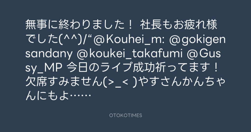 無事に終わりました! 社長もお疲れ様でした(^^)/“@Kouhei_m: @gokigensandany @ko... -
