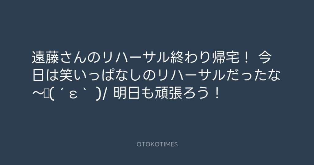 遠藤さんのリハーサル終わり帰宅! 今日は笑いっぱなしのリハーサルだったな~♪(´ε... -