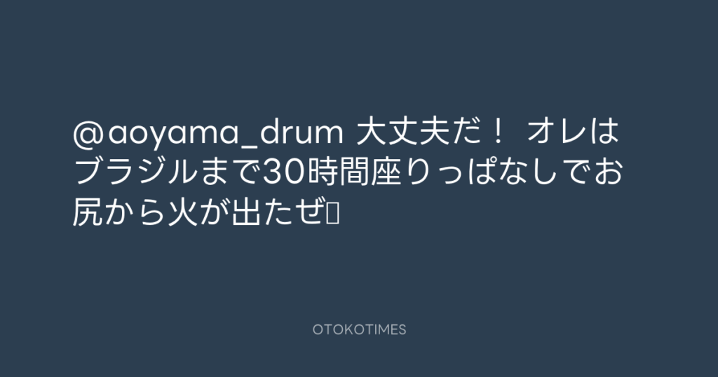 @aoyama_drum 大丈夫だ! オレはブラジルまで30時間座りっぱなしでお尻から火が出... -