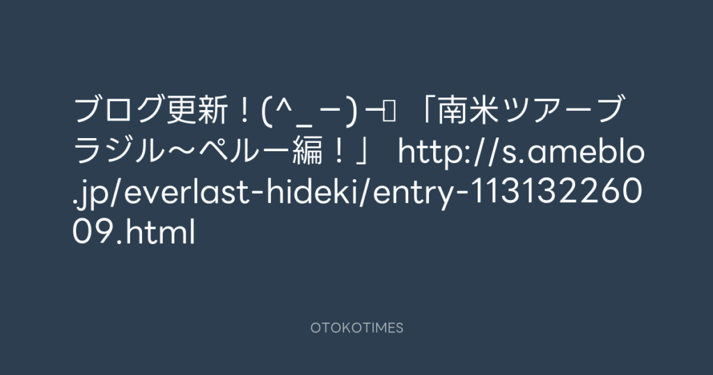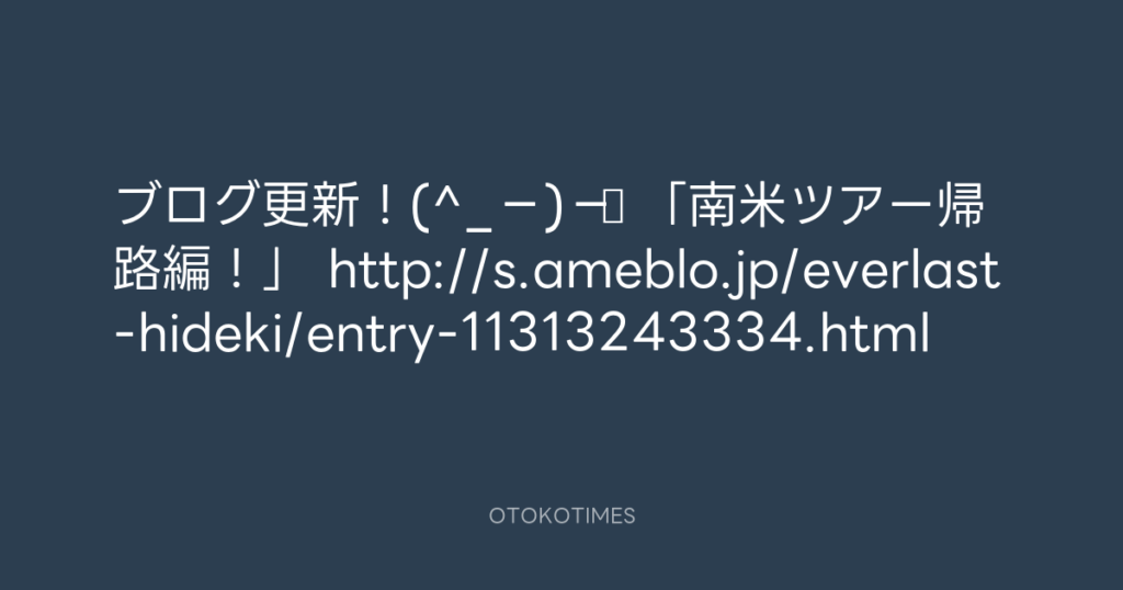 ブログ更新!(^_−)−☆ 「南米ツアー帰路編!」 http://s.ameblo.jp/everlast-hideki... -
