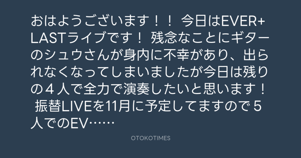おはようございます!! 今日はEVER+LASTライブです! 残念なことにギターのシュウ... -