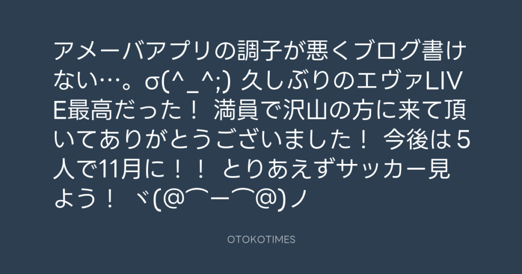 アメーバアプリの調子が悪くブログ書けない…。σ(^_^;) 久しぶりのエヴァLIVE最高だ... -