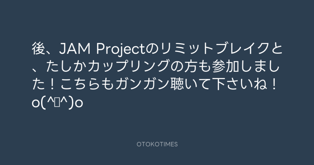 後、JAM Projectのリミットブレイクと、たしかカップリングの方も参加しました!こ...