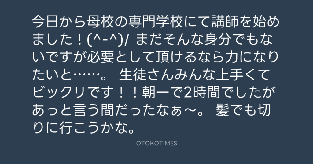 今日から母校の専門学校にて講師を始めました!(^-^)/ まだそんな身分でもないです... -