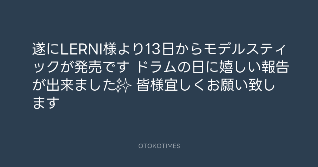 遂にLERNI様より13日からモデルスティックが発売です🥁 ドラムの日に嬉しい報告が... -