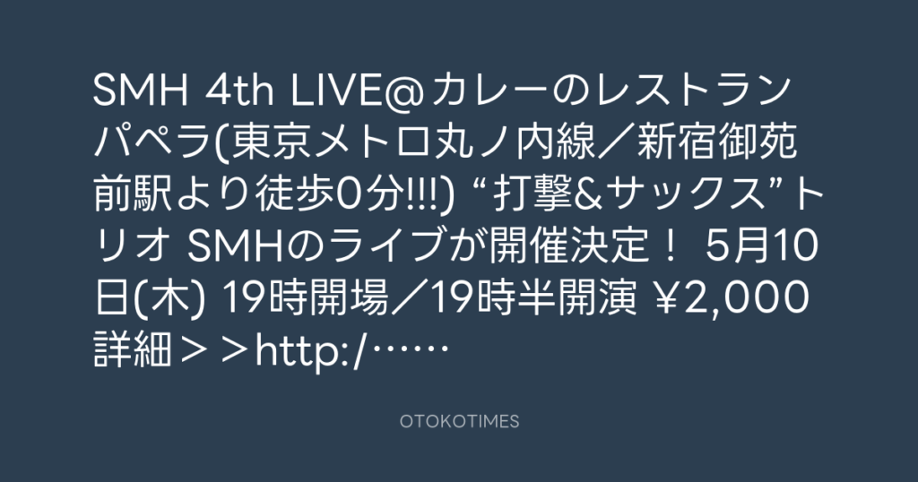 SMH 4th LIVE@カレーのレストラン パペラ(東京メトロ丸ノ内線/新宿御苑前駅より徒...