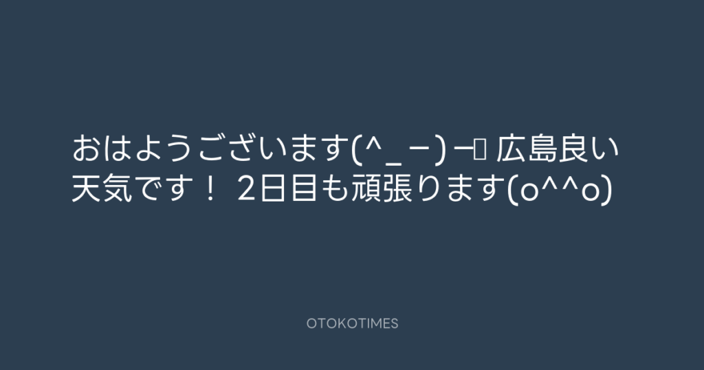 おはようございます(^_−)−☆ 広島良い天気です! 2日目も頑張ります(o^^o) -