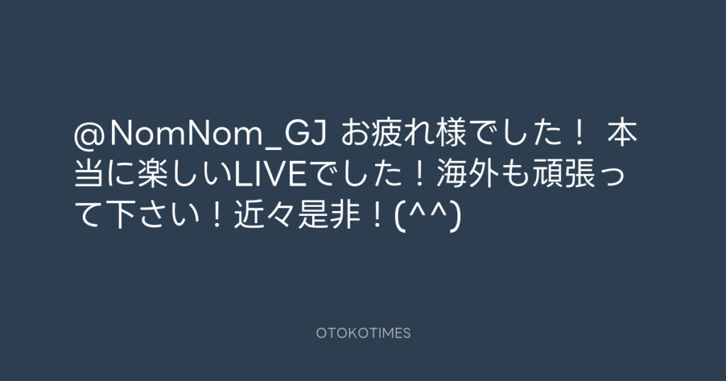 @NomNom_GJ お疲れ様でした! 本当に楽しいLIVEでした!海外も頑張って下さい!近... -