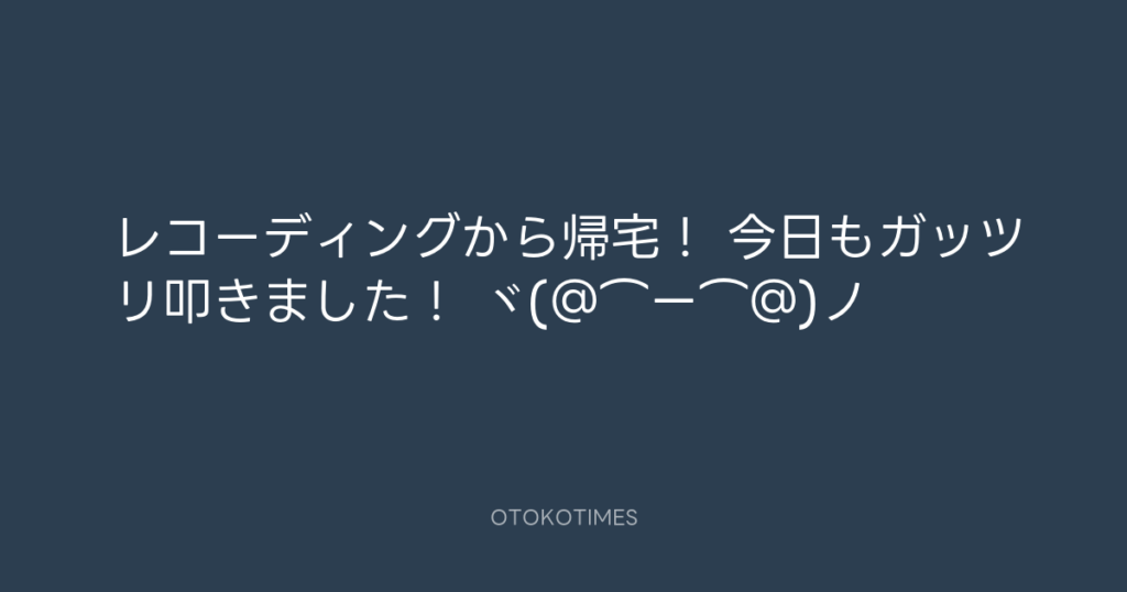 レコーディングから帰宅! 今日もガッツリ叩きました! ヾ(@⌒ー⌒@)ノ -