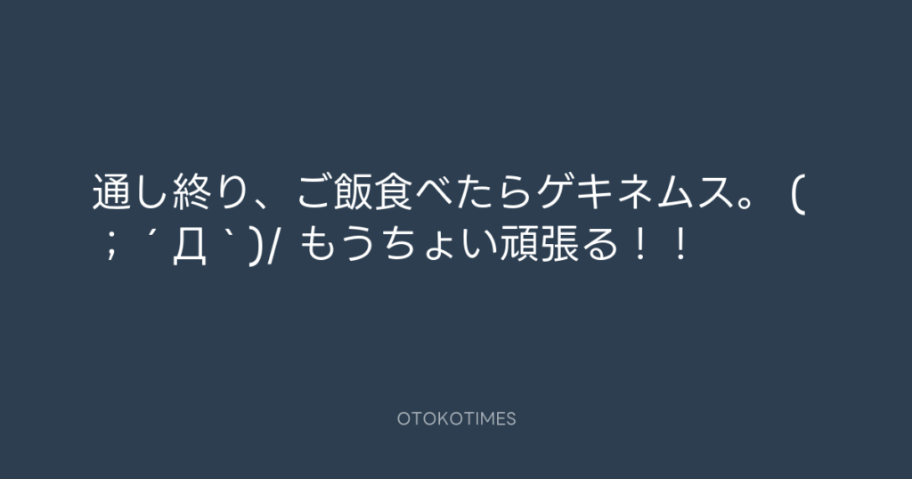 通し終り、ご飯食べたらゲキネムス。 ( ;´Д`)/ もうちょい頑張る!!