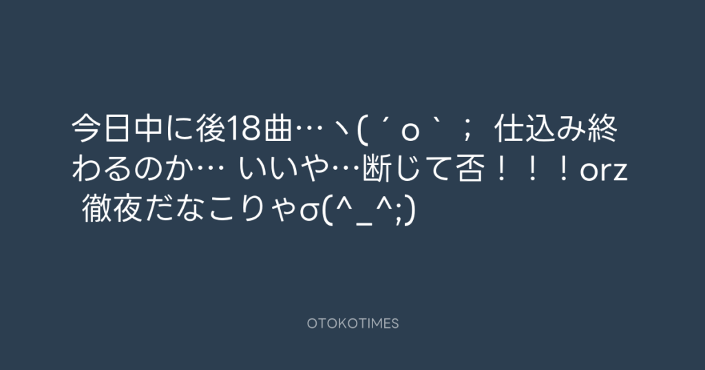今日中に後18曲…ヽ(´o`; 仕込み終わるのか… いいや…断じて否!!!orz 徹夜だな...