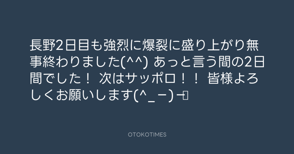 長野2日目も強烈に爆裂に盛り上がり無事終わりました(^^) あっと言う間の2日間でし... -
