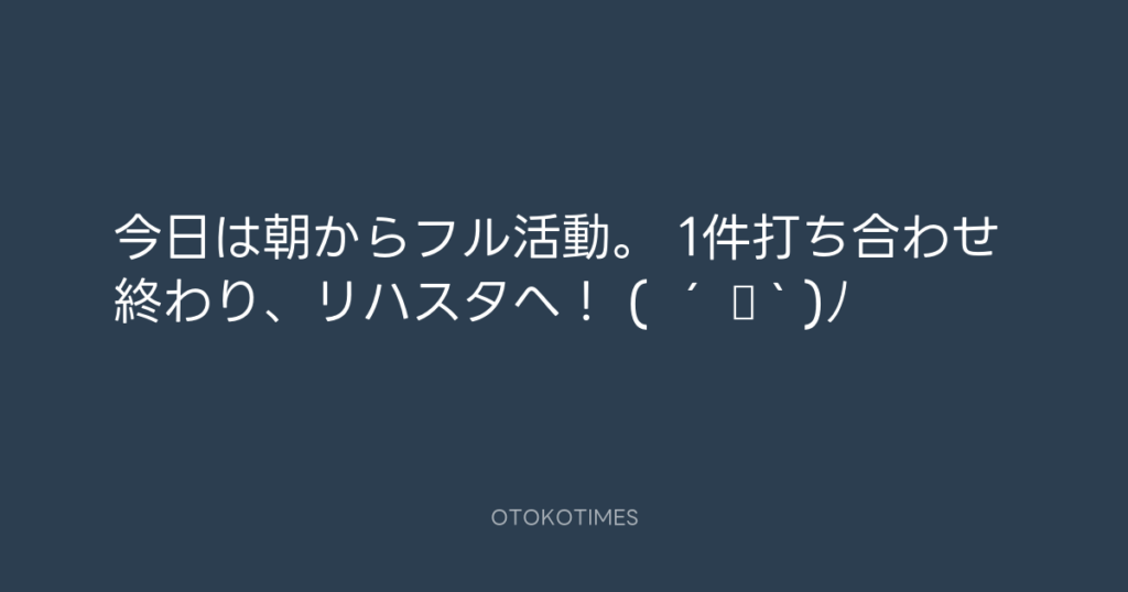 今日は朝からフル活動。 1件打ち合わせ終わり、リハスタへ! ( ´ ▽ ` )ノ -