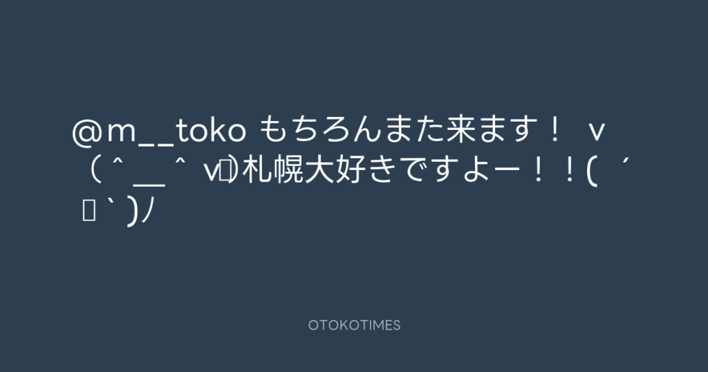 @m__toko もちろんまた来ます! v(^_^v)♪ 札幌大好きですよー!!( ´ ▽ ` )ノ -
