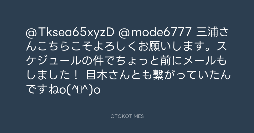 @Tksea65xyzD @mode6777 三浦さんこちらこそよろしくお願いします。スケジュールの... -