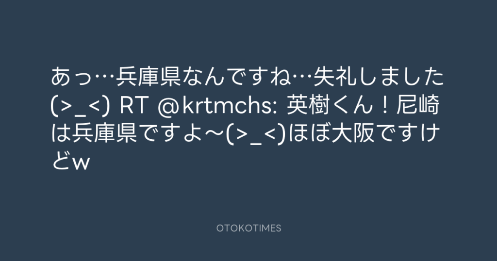 あっ…兵庫県なんですね…失礼しました(>_<) RT @krtmchs: 英樹くん!尼崎は兵... -