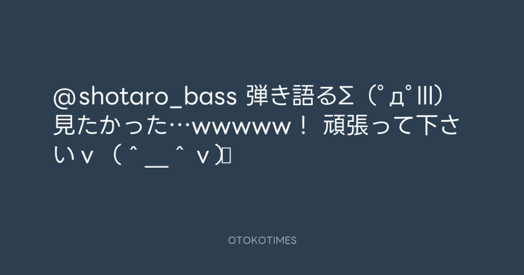 @shotaro_bass 弾き語るΣ(゚д゚lll)見たかった…wwwww! 頑張って下さいv(^_^... -