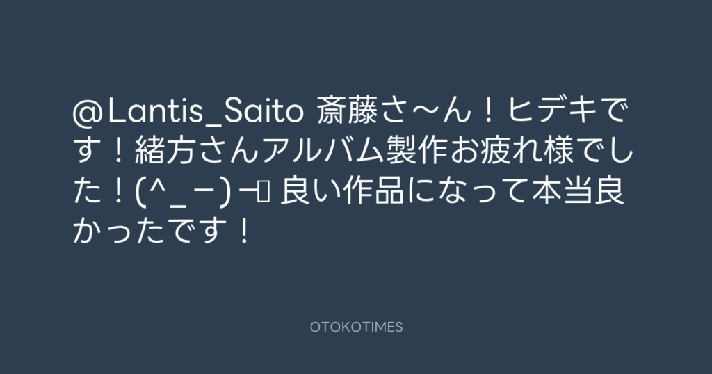 @Lantis_Saito 斎藤さ~ん!ヒデキです!緒方さんアルバム製作お疲れ様でした!(^_... -