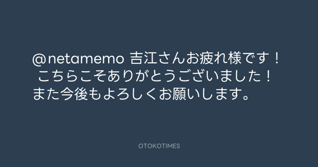 @netamemo 吉江さんお疲れ様です! こちらこそありがとうございました! また今後... -