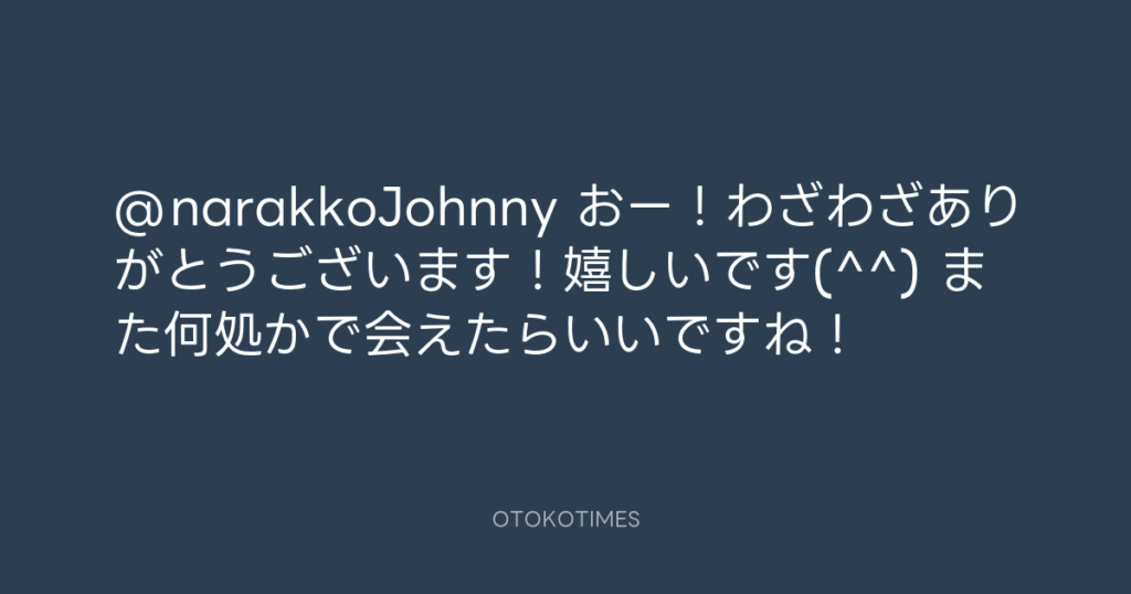 @narakkoJohnny おー!わざわざありがとうございます!嬉しいです(^^) また何処か... -