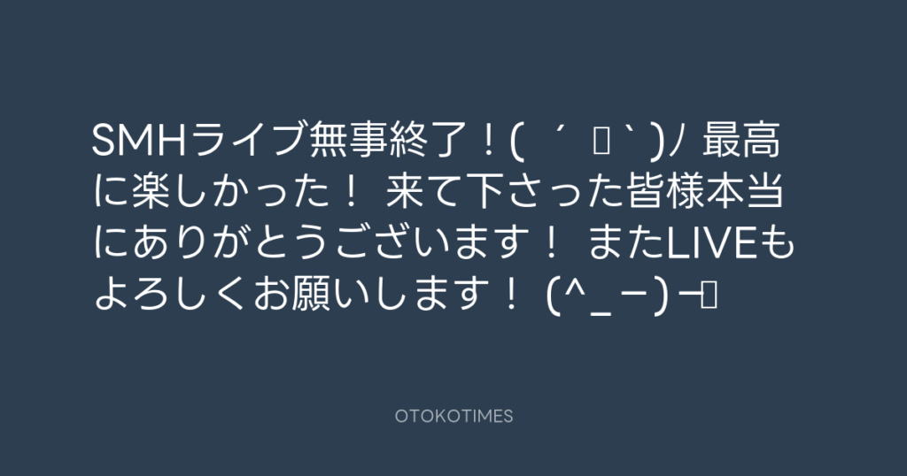 SMHライブ無事終了!( ´ ▽ ` )ノ 最高に楽しかった! 来て下さった皆様本当にありが... -