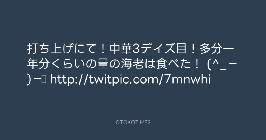 打ち上げにて!中華3デイズ目!多分一年分くらいの量の海老は食べた! (^_−)−☆ htt... -
