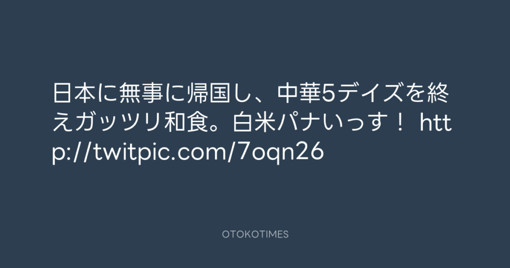 日本に無事に帰国し、中華5デイズを終えガッツリ和食。白米パナいっす! http://tw... -