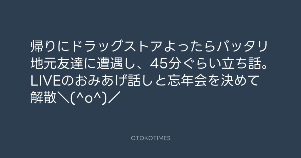 帰りにドラッグストアよったらバッタリ地元友達に遭遇し、45分ぐらい立ち話。LIVE... -