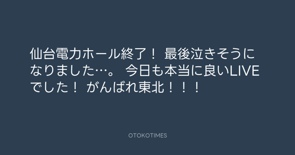 仙台電力ホール終了! 最後泣きそうになりました…。 今日も本当に良いLIVEでした!... -