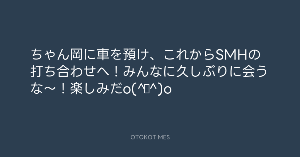ちゃん岡に車を預け、これからSMHの打ち合わせへ!みんなに久しぶりに会うな~!楽... -