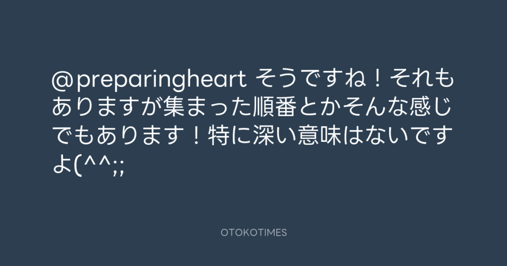 @preparingheart そうですね!それもありますが集まった順番とかそんな感じでもあ... -