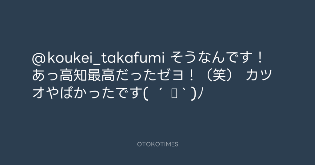 @koukei_takafumi そうなんです! あっ高知最高だったゼヨ!(笑) カツオやばかっ... -