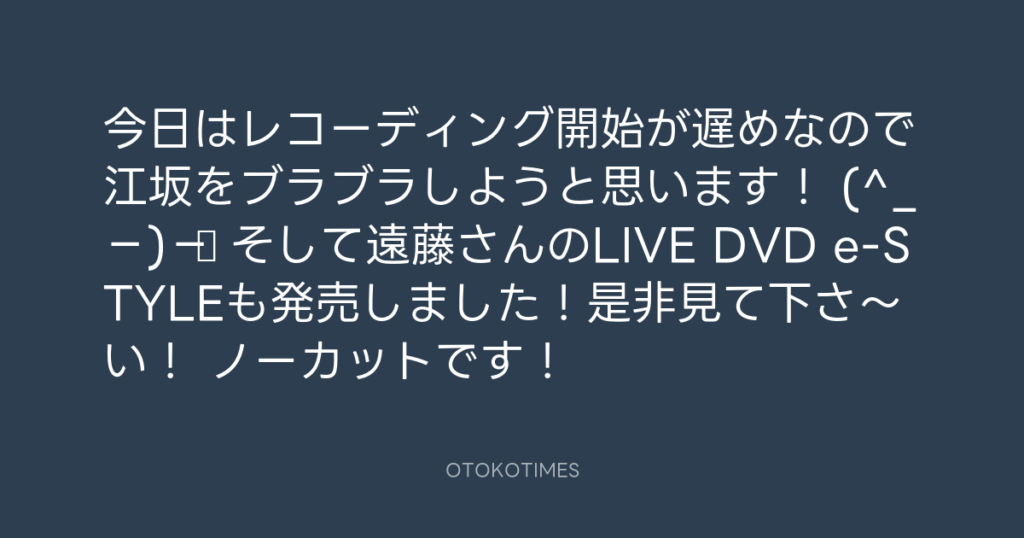 今日はレコーディング開始が遅めなので江坂をブラブラしようと思います! (^_−)−☆ ... -