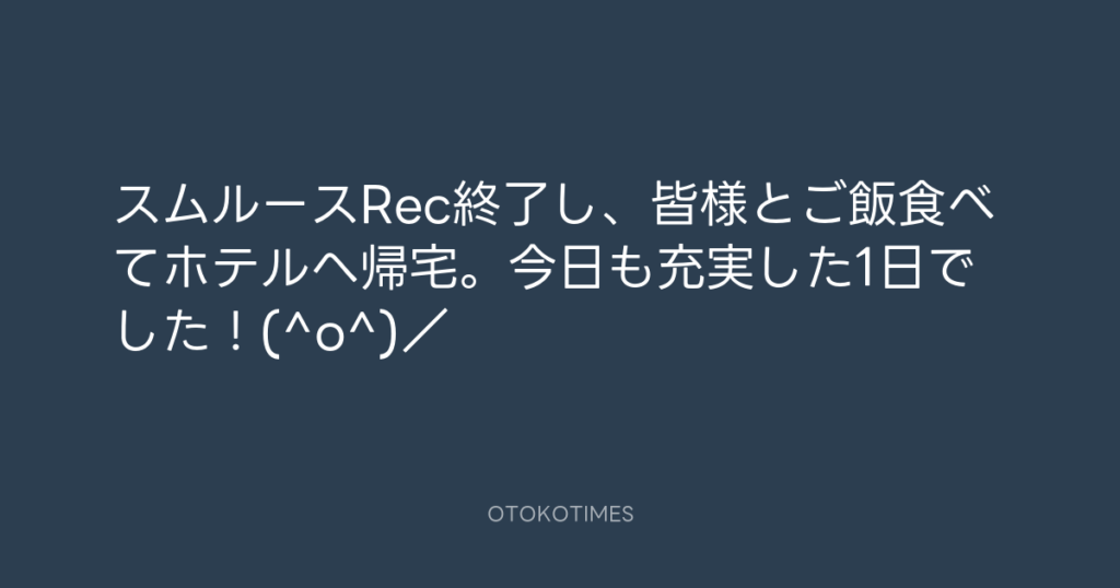 スムルースRec終了し、皆様とご飯食べてホテルへ帰宅。今日も充実した1日でした!(... -