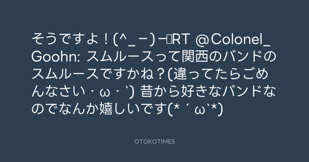 そうですよ!(^_−)−☆RT @Colonel_Goohn: スムルースって関西のバンドのスムルース... -