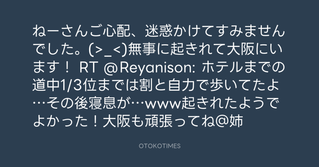 ねーさんご心配、迷惑かけてすみませんでした。(>_<)無事に起きれて大阪にい... -