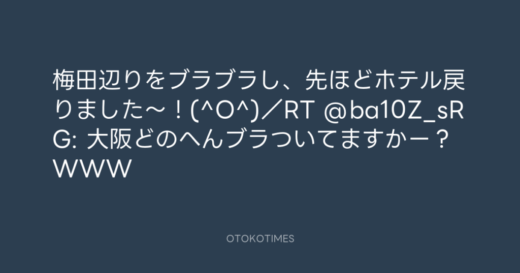 梅田辺りをブラブラし、先ほどホテル戻りました~!(^O^)/RT @ba10Z_sRG: 大阪ど... -