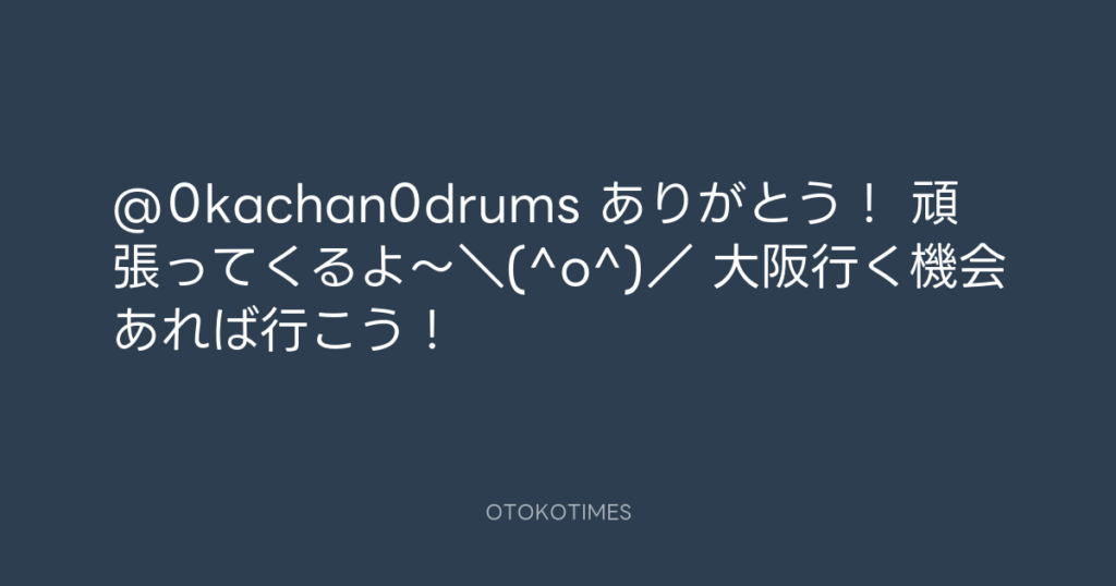 @0kachan0drums ありがとう! 頑張ってくるよ~\(^o^)/ 大阪行く機会あれば行こう! -