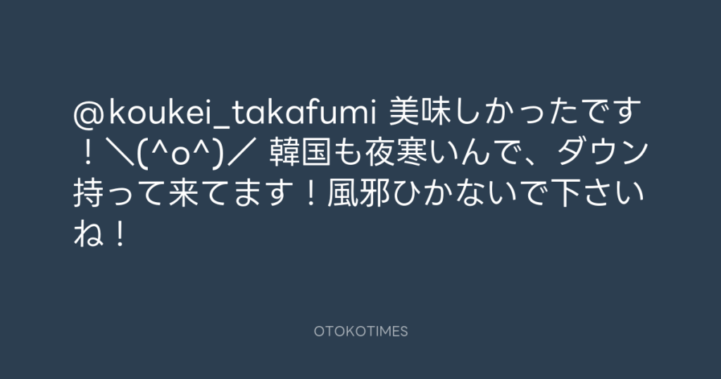 @koukei_takafumi 美味しかったです!\(^o^)/ 韓国も夜寒いんで、ダウン持って来... -