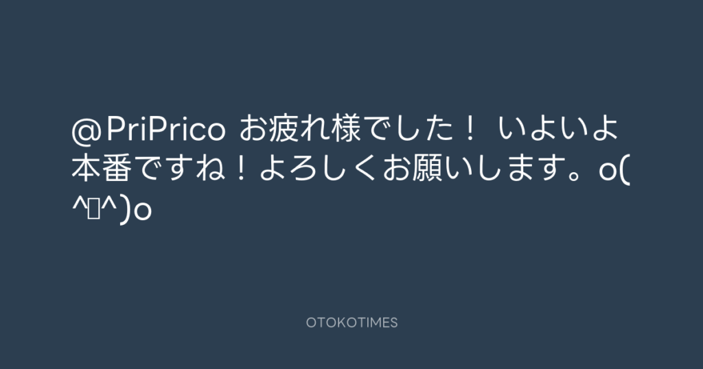 @PriPrico お疲れ様でした! いよいよ本番ですね!よろしくお願いします。o(^▽^)o -