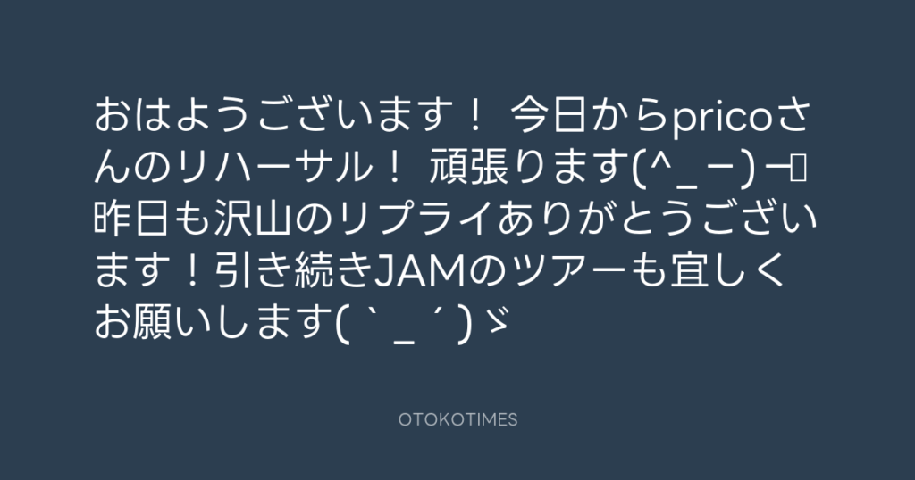 おはようございます! 今日からpricoさんのリハーサル! 頑張ります(^_−)−☆ 昨日も... -