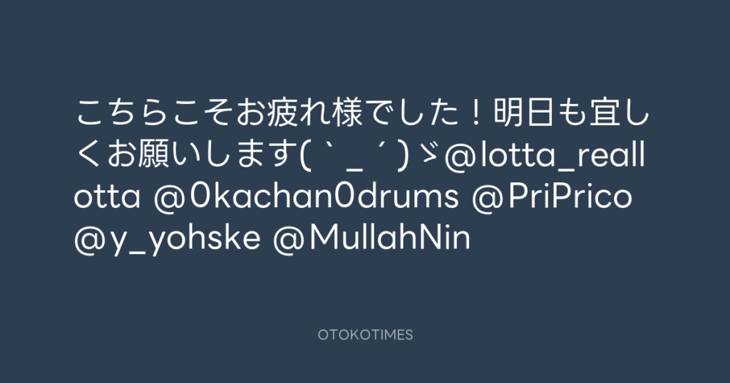 こちらこそお疲れ様でした!明日も宜しくお願いします(`_´)ゞ@lotta_reallotta @0... -