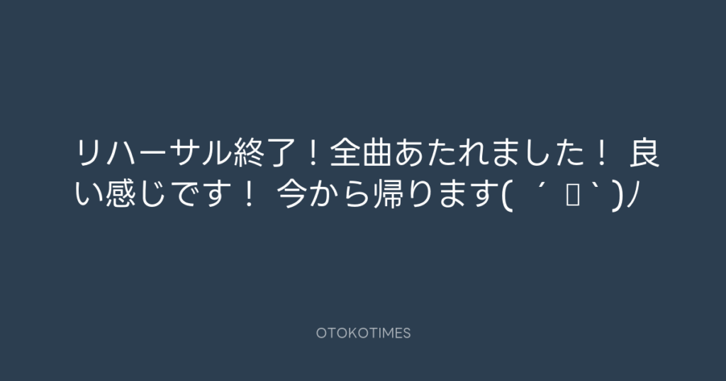 リハーサル終了!全曲あたれました! 良い感じです! 今から帰ります( ´ ▽ ` )ノ -