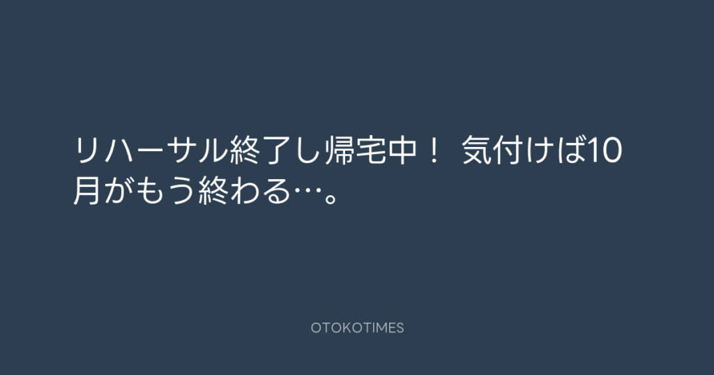 リハーサル終了し帰宅中! 気付けば10月がもう終わる…。 -